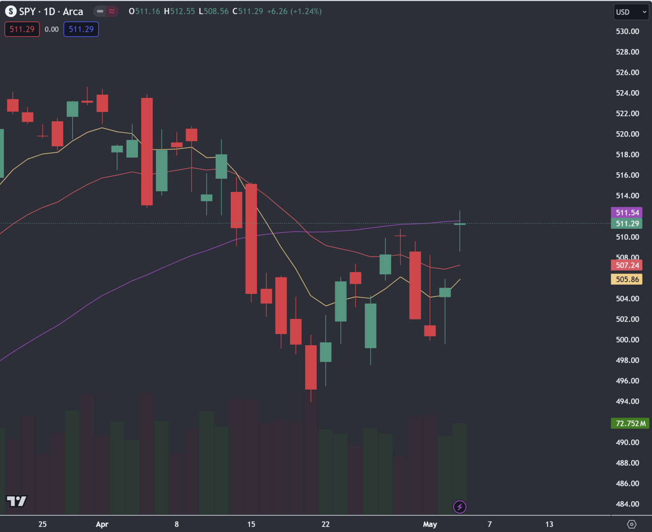 The week finished with an underwhelming jobs report, but stocks rose over 1% to close the week in the green. SPY closed just a few cents below the 50 ma, signaling a potential technical breakthrough after the last few weeks since the charts broke down. This week will be pivotal in determining whether the market can finally get out of this rut or not.