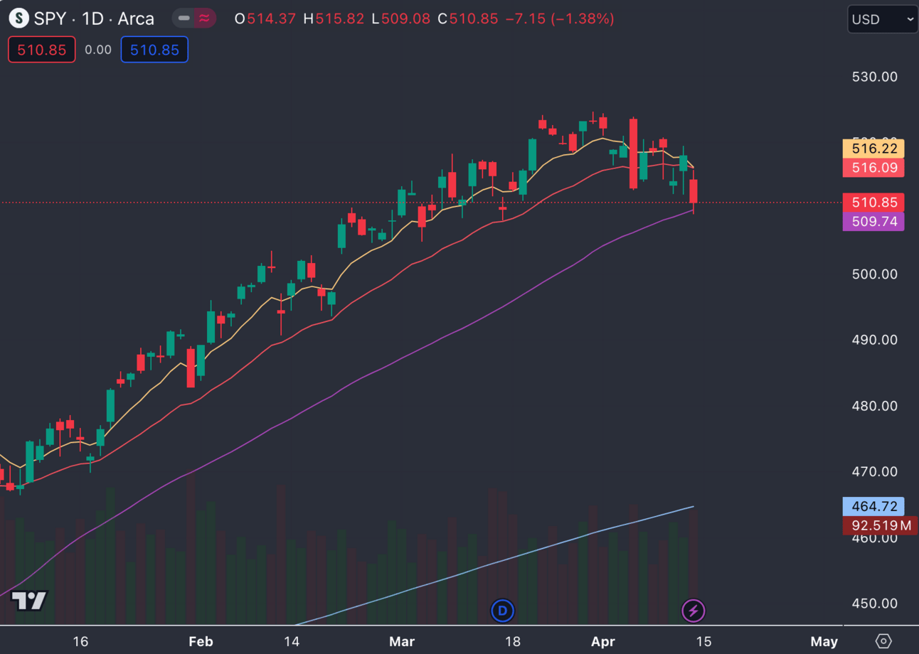The reality is that inflation is a real problem and the markets will not like the fed to hold off on cutting interest rates. Every bull run has to come to an end at some point and it certainly looks like we are headed that direction now. Before stocks weaken there is always a technical trend break, which we see here with the SPY finally breaking below the 21 ema. Unfortunately there arenโt any big catalysts until big tech starts reporting earnings in 2 weeks.